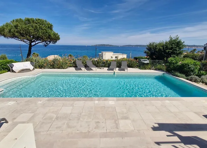 - ❓Wie weit ist die Villa vom Flughafen entfernt?Die Villa liegt 55 vom Flughafen Toulon-Hyeres entfernt und ist in 56 Minuten mit dem Auto erreichbar.